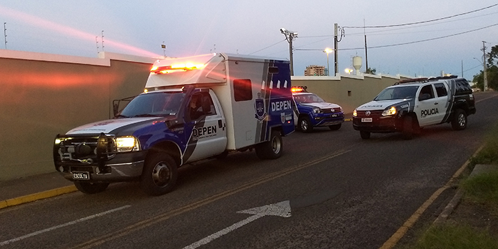 DETENTOS SÃO TRANSFERIDOS DA 4ª SDP DE UNIÃO DA VITÓRIA 21 nov, 2019 POLÍCIA As equipes de segurança pública de União da Vitória, trabalharam na tarde desta quarta-feira, 20 de novembro, para realizar a transferência de alguns detentos da 4ª Sub Divisão Policial de União da Vitória, após a fuga da última segunda-feira, 18. O trabalho de transferência já teve inicio nas primeiras horas da manhã, quando a primeira viatura do Departamento Penitenciário do Paraná (Depen), chegou ao município e ficou no Fórum da cidade. Já na parte da tarde na sede da 4ª SDP, as equipes do 27º Batalhão da Polícia Militar e agentes da Polícia Civil, já atuavam para verificar quais detentos seriam transferidos e logo em seguida chegou em União da Vitória, outras viaturas do Depen para fazer a remoção para outra unidade. Por volta das 18h30, teve início as primeiras movimentações das viaturas no pátio da delegacia e às 18h55, saiu algumas viaturas com um forte esquema de segurança. Já às 19h, outras viaturas saíram do pátio da 4ª Sub Divisão Policial com outros detentos. Até o presente momento por segurança o delegado chefe da 4ª Sub Divisão Policial André Vilela, não falou com a imprensa sobre o destino dos detentos e quantos foram transferidos. O pedido de transferência foi feito após a fuga de 11 detentos na segunda-feira, 18, por volta das 4 horas da manhã, após detentos fazerem um túnel de cinco metros e saírem no pátio, onde ficam os veículos apreendidos pela Polícia Militar e Polícia Civil. Até o presente momento somente um detento foi recapturado. Na terça-feira, o delegado André Vilela, recebeu a visita da Juíza Jeane Carla Furlan, na sede da delegacia, onde foi tratado sobre a situação da 4ª Sub Divisão Policial. fonte e fotos Marciel Borges/ Rádio Colmeia