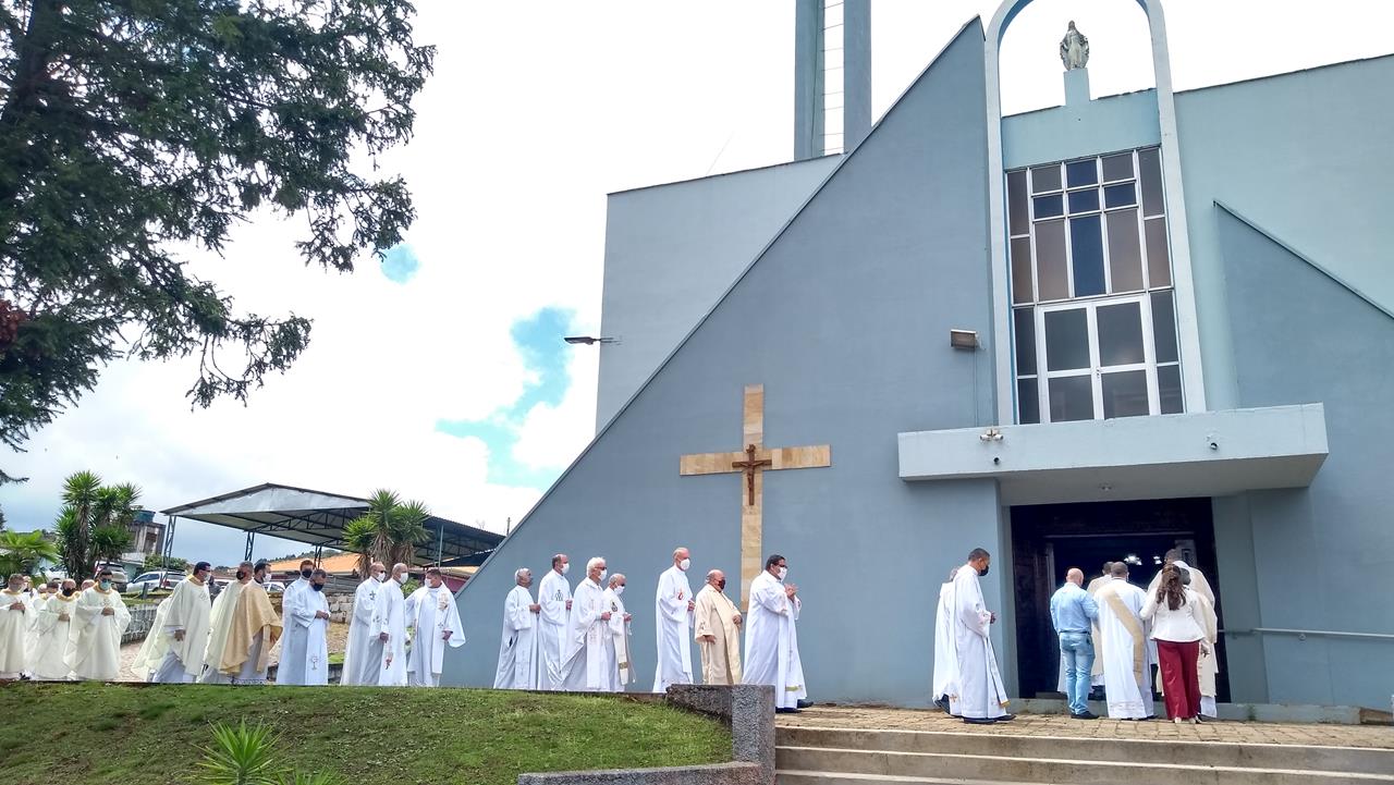 Ordenado em General Carneiro, padre Alisson é o mais novo sacerdote da Diocese 19 out, 2021 CIDADE Ouvir áudio A Diocese de União da Vitória celebrou com júbilo o dia 16 de outubro, ganhando para seu presbitério um novo sacerdote. Não foi diferente também para a comunidade da paróquia Nossa Senhora das Graças e São José, de General Carneiro, a qual oferece à Deus seu primeiro sacerdote. O momento veio sendo esperado e preparado há tempo pela comunidade, como expressou o atual pároco, padre João Ari Schulz, que também falou do tríduo preparatório e da alegria em preparar a ordenação de um padre para a paróquia. Confira a transmissão da ordenação: https://www.youtube.com/watch?v=dvA0EoZMGEk fonte : Comunicação da Diocese. Ordenação do Padre Alisson de Moura