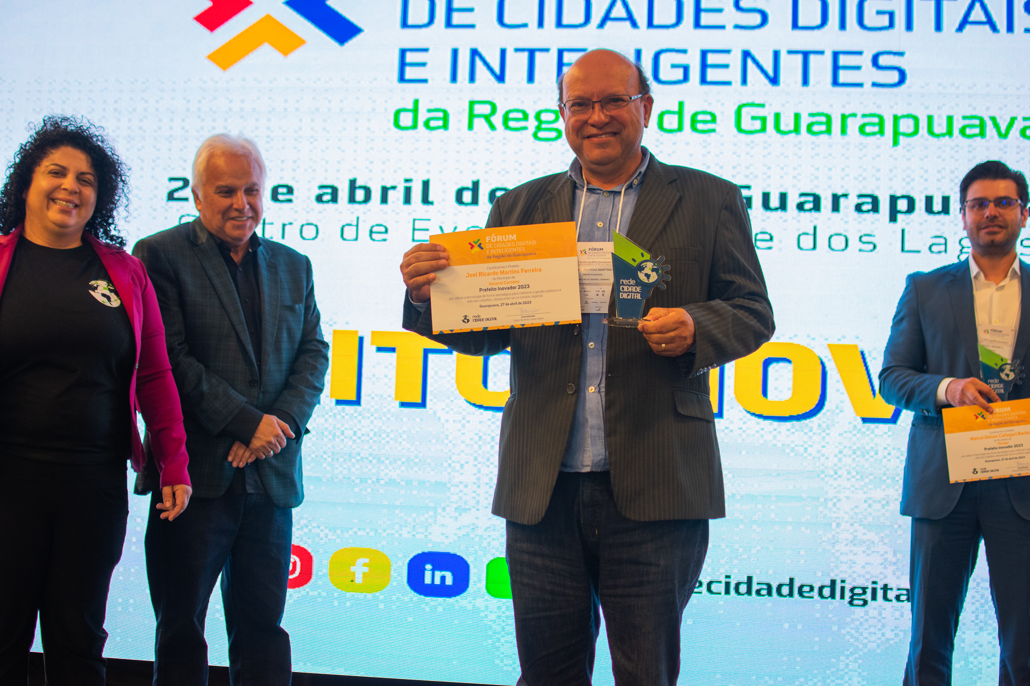 Prefeitura de General Carneiro recebe reconhecimento regional por Sistema de Videomonitoramento. General Carneiro é MAIS SEGURA, MODERNA E INTELIGENTE! 28 abr, 2023 CIDADE General Carneiro é MAIS SEGURA, MODERNA E INTELIGENTE! Esse é o reconhecimento da Rede Cidade Digital, que reconheceu 11 prefeitos paranaenses no evento que reuniu mais de 50 Prefeituras do Estado do Paraná. O prefeito de General Carneiro, Joel, recebeu o reconhecimento Prefeito Inovador pela implantação do Sistema de Videomonitoramento, que abrange cidade e interior com mais de 28 câmeras de segurança ligadas a PMPR. Além do prefeito, o vice-prefeito Celio e a equipe de diversos setores da Prefeitura participaram do evento e foram apresentados às soluções tecnológicas de outras Prefeituras do Estado. . . “Possuímos 23 prédios públicos que precisam de monitoramento. Além disso, as avenidas principais e entradas e saídas do município também são monitoradas com imagens em tempo real pela Polícia Militar. É um trabalho maravilhoso, que reduziu cerca de 80% das invasões, e ouso dizer que quase 100% das ocorridas em prédios públicos e contribuiu muito para as famílias da nossa cidade. Nosso próximo passo é instalar mais câmeras nas principais estradas do interior também. Hoje cuidamos e cuidamos bem do nosso povo”, aponta o prefeito.