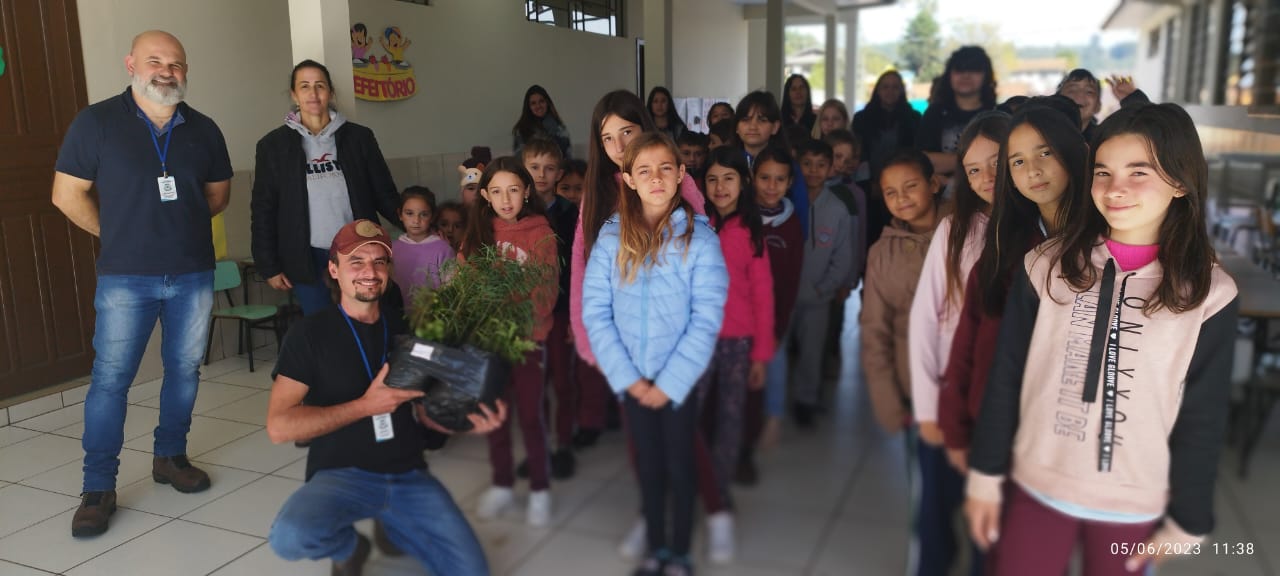 Escolas de General Carneiro recebem mudas de plantas nativas para aprender sobre espécies da região e plantio. 13 jun, 2023