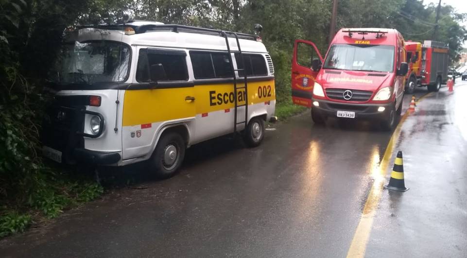 Seis crianças ficam feridas em acidente com van escolar irregular No bairro Alto Boqueirão, em Curitiba. 23 mai, 2019 PARANÁ (Foto: Douglas Bandeira/Rede Massa) Uma Kombi que fazia o transporte escolar de forma irregular bateu em uma árvore, na tarde desta quinta-feira (23), no bairro Alto Boqueirão, em Curitiba. O acidente deixou seis crianças feridas. Todas receberam os primeiros socorros do Siate e serão encaminhadas a hospitais para exames complementares. “Por sorte, nenhuma delas ficou ferida com gravidade”, contou o tenente Júnior, do Corpo de Bombeiros, em entrevista. “Todas estavam muito assustadas, algumas chorando. Elas acabaram ficando presas na parte de trás do veículo após o acidente”, explicou. No momento do acidente garoava e o asfalto estava molhado. “Eu estava dirigindo e provavelmente a barra de direção quebrou. O carro virou e entrou bem na direção da árvore. Foi muito, muito rápido”, justificou o motorista que se apresentou como Jeferson. Ele afirma que não dirigia em alta velocidade e que tem experiência com transporte escolar. Segundo o motorista, ele está no ramo há sete anos. Matéria completa: massanews.com