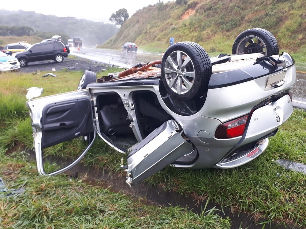 Acidente com quatro carros deixa uma pessoa morta e duas gravemente feridas na BR-277, em Palmeira De acordo com a PRF, chovia forte no trecho no início da tarde desta quinta-feira (23). 23 mai, 2019 TRÂNSITO (Foto: Alceu Nievola/RPC Ponta Grossa) Uma pessoa morreu e duas ficaram gravemente feridas em um acidente envolvendo quatro carros na BR-277, em Palmeira, nos Campos Gerais do Paraná. O acidente aconteceu no início da tarde desta quinta-feira (23), de acordo com a Polícia Rodoviária Federal (PRF). Por volta das 12h20, no KM 162 da rodovia, um carro de cor verde perdeu o controle da direção, invadiu a pista contrária e bateu em um veículo de cor prata que seguia na direção contrária, conforme a PRF. O carro prata capotou, segundo a polícia. Outros dois veículos que estavam na pista, incluindo um carro da Prefeitura de Palmeira, não conseguiram parar a tempo e também colidiram, de acordo com a PRF. O motorista do carro prata não resistiu aos ferimentos e morreu no local. A passageira do mesmo veículo, além do motorista do carro verde foram socorridos e levados para hospitais de Ponta Grossa, nos Campos Gerais, e Campo Largo, na Região Metropolitana de Curitiba. Os passageiros dos outros dois veículos não se feriram. De acordo com a PRF, a chuva forte no trecho da rodovia pode ter contribuído para o acidente. Matéria: g1.globo.com